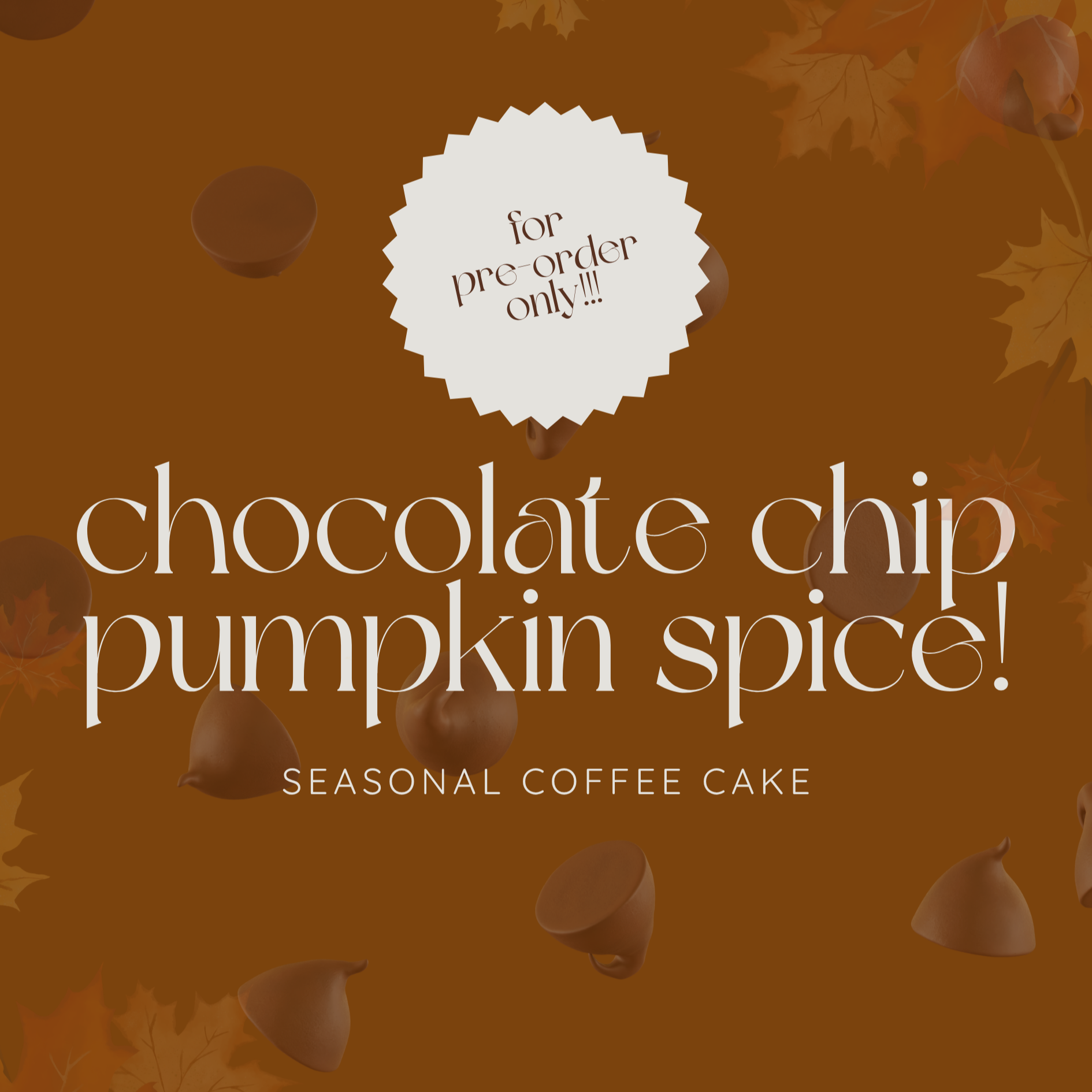 FOR PRE-ORDER ONLY!!! Chocolate Chip Pumpkin Spice Coffee Cakes will be available in November!